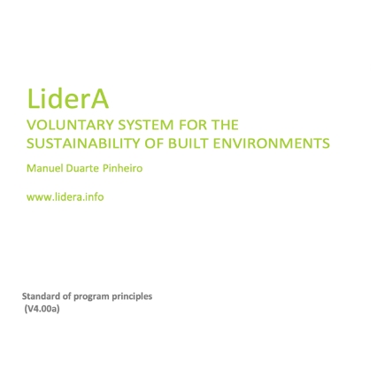 The LiderA system, its approach, and application have been the subject of numerous publications and presentations, including a book on Environment and Sustainable Construction (2006), Sustainable Real Estate (2014), as well as dozens of master’s and doctoral theses, and various documents. The current version of the LiderA system is version 4. The system explanation is available in the LiderA V4 standard.