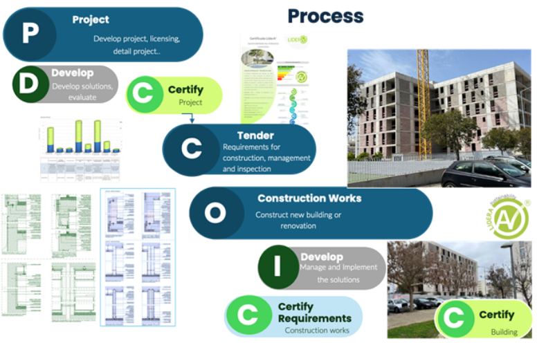 Certification through the LiderA system is voluntary. LiderA’s application involves assessing the performance level of the case under analysis (using the available model), classifying the degree of sustainability achievement (from G to A++) achieved with the information and solutions defined or existing.